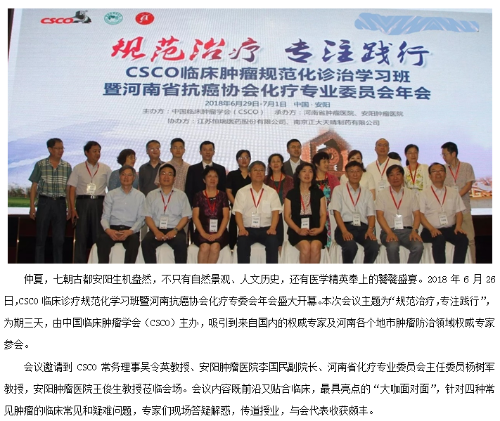 热烈祝贺CSCO临床肿瘤规范化诊治学习班--暨河南省抗癌协会化疗专业委员会年会圆满闭幕