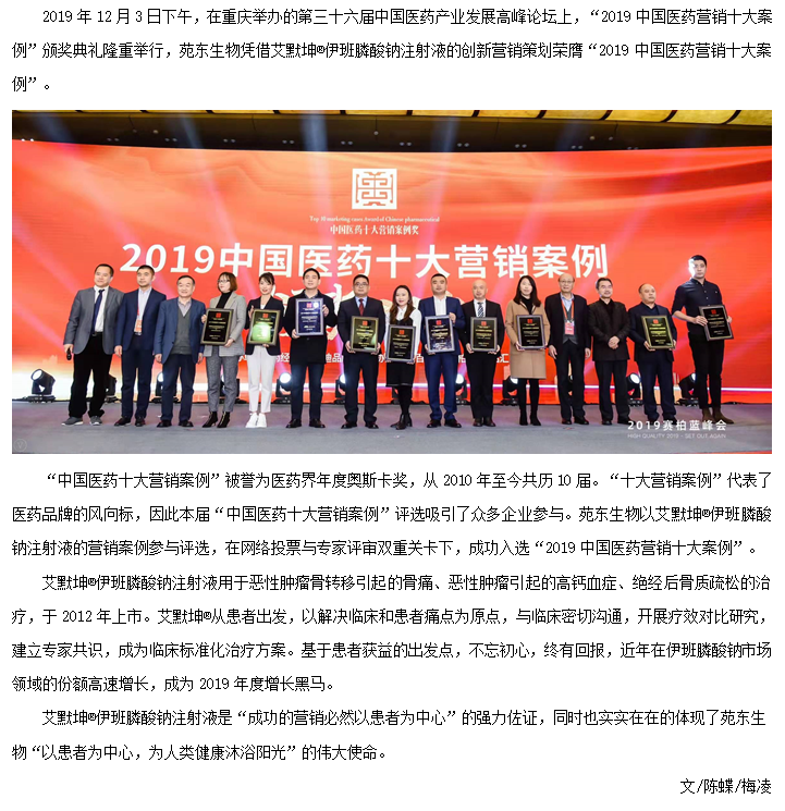 bsports生物荣获“2019中国医药营销十大案例”奖